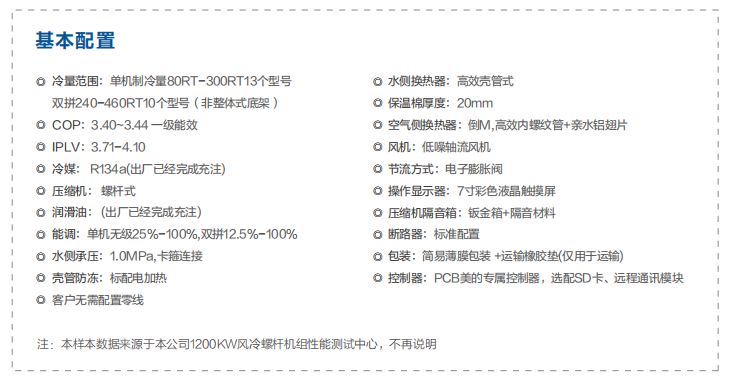 美的鲲禹高效空气源螺杆式热泵机组,采用高能效的半封闭双螺杆压缩机,高效壳管换热器及高效倒M型翅片换热器,通过电子膨胀阀控制技术,使机组能在工作范围内以节能的模式满足用户的需求。机组采用R134a环保制冷剂,产品获得AHRI认证、CRAA认证及节能认证并进入政府采购清单。