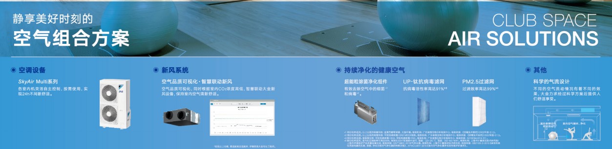 会所相对而言是一个比较私密的聚会、交流的场所,近年来作为相对高端的设计项目,其对舒适、个性化的设计要求更高。大金室内机提供舒适的气流同时采用卓越的静音技术,让用户享受惬意安静安心的环境,更可将关注的健康空气可视化,让用户更安心。