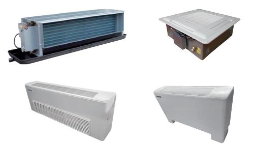 末端产品,由盘管、风机、电机、接水盘、钣金件等组成。风机盘管机组本身不带冷热源,盘管内的冷(热)媒水由空调主机房集中供给,主要依靠风机的强制作用,使空气通过盘管表面时被冷却或加热,因而强化了散热器与空气间的对流换热作用,能够迅速冷却或加热房间的空气