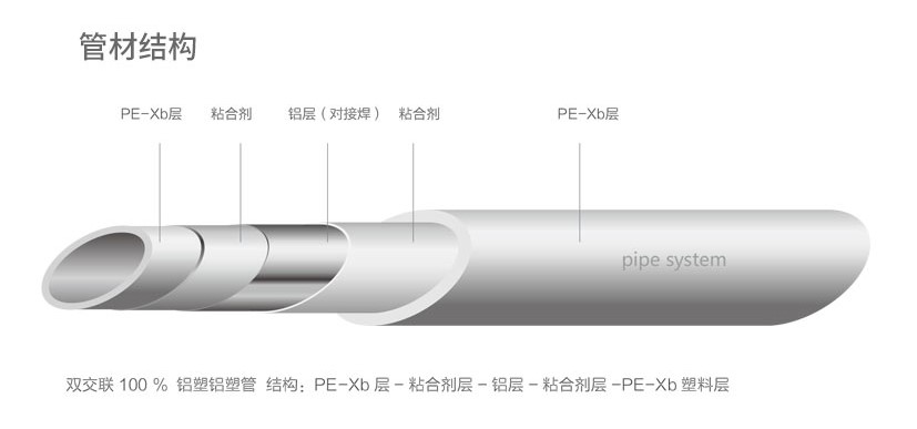 耐腐蚀、不生锈、卫生无毒、重量轻、可任意取长、集金属管与塑料管的优点于一身,自由弯曲不反弹,内外层为聚乙烯,耐腐蚀、抗老化、不结垢;中间铝层,绝对隔绝氧气的渗透,还能起到屏蔽的功能。瞬时可耐高温 110℃,抗低温 -40℃。