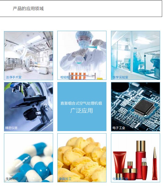 •天加风冷净化式空调机组适用于制药厂、医疗卫生、生物工程、食品饮料、电子工业等对空气有洁净度及带有温湿度控制功能的场所,适用于几十到几千平方米的空调净化面积。相较于水系统设计,净化式空调机组以天加专 利的迷宫式结构的空气处理机作为原型,配以直膨蒸发盘管,使其具有系统简单、安装方便、造价低等优点。